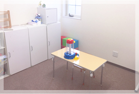 小児の作業療法で、上肢機能、高次脳機能に対する作業療法は、2階の専用OT室にて行います。ここは他の部屋から離れており、静かで、子供達は机上での作業に集中して取り組むことができます。