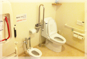 トイレは、バリアフリーを考慮した設計となっています。身障者用トイレにはオムツ交換台のご用意がございます。